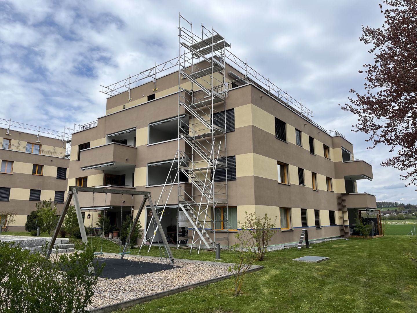 Die Wohnsiedlung weist verschiedene bauliche und technische Mängel auf, insbesondere an den Fassaden, in der Tiefgarage sowie bei einzelnen Ausbauteilen. Ziel des Projekts ist es, die Sicherheit zu gewährleisten, Schäden nachhaltig zu beheben und gleichzeitig sinnvolle technische Verbesserungen umzusetzen. Die Massnahmen umfassen die Instandstellung der Südfassaden, den Ersatz mangelhafter Dämmplatten in der Tiefgarage, die Umrüstung der Beleuchtung auf LED sowie die Vorbereitung der Parkplätze für E-Mobility. Zusätzlich werden bestehende PV-Anlagen erweitert, eine Paketfachanlage realisiert und diverse Maler- und Instandstellungsarbeiten ausgeführt. Die Arbeiten werden unter Berücksichtigung des laufenden Betriebs geplant und umgesetzt.