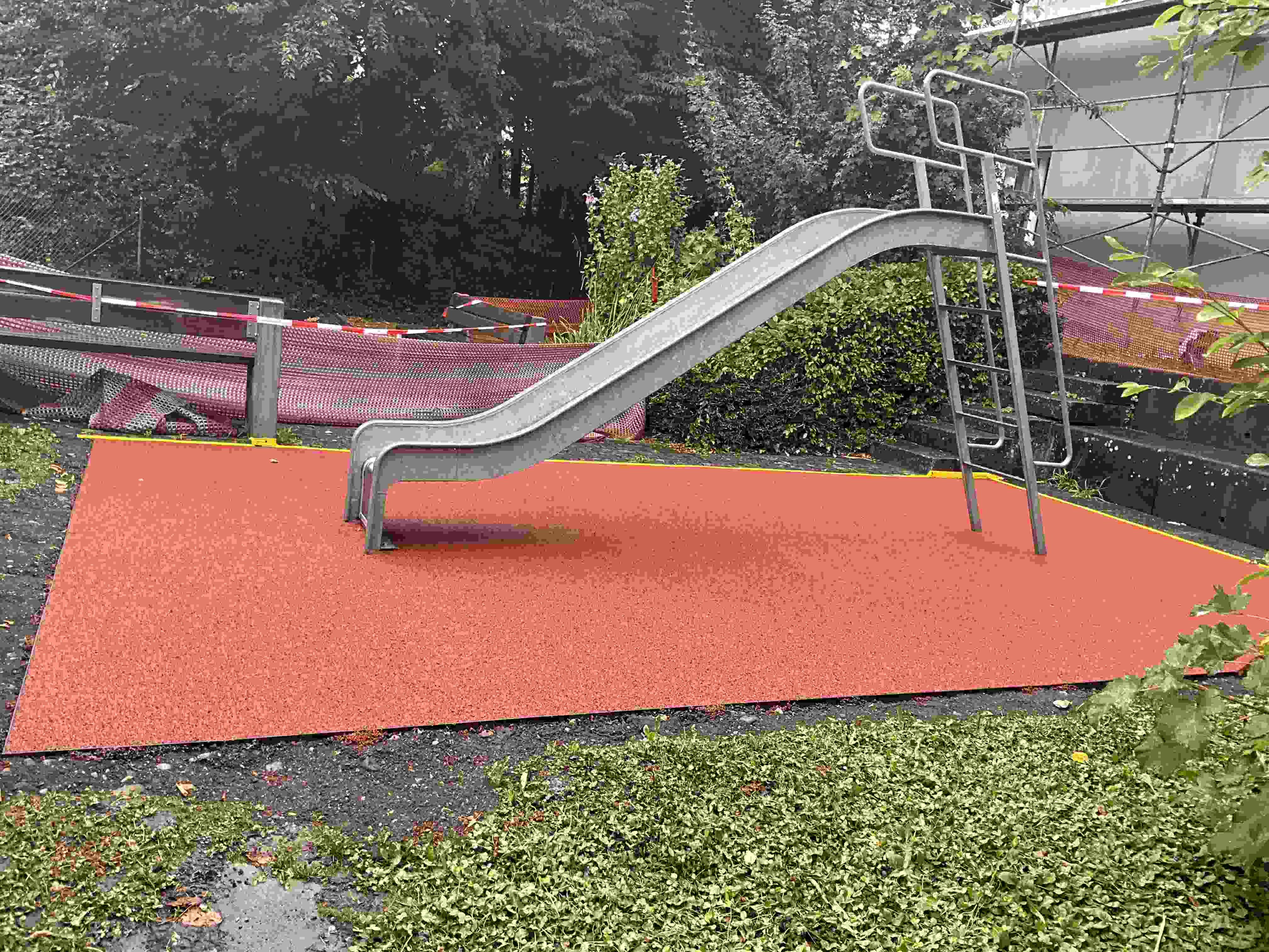 - Spielplatz: Ersatz durch fugenlosen Fallschutzbelag.