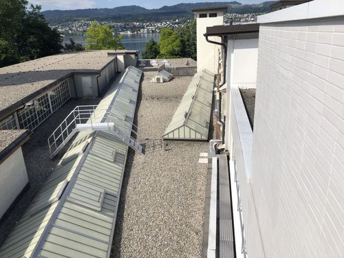 Im Zuge der Zustandsanalyse werden diverse Mängel an Gebäudehülle, technischen Anlagen und sicherheitsrelevanten Bauteilen festgestellt. Ziel des Projekts ist es, mit gezielten Eingriffen die Betriebssicherheit zu gewährleisten, Schäden zu vermeiden und den Energieverbrauch zu reduzieren, ohne der geplanten Totalsanierung vorzugreifen. Die Massnahmen umfassen unter anderem die Optimierung der Elektroanlagen inklusive Vorbereitung für E-Mobility, den Ersatz der Hauptverteilung sowie die Umrüstung der Beleuchtung auf LED. Im Bereich HLKS werden notwendige Eingriffe vorgenommen, um die Lebensdauer der Anlagen zu verlängern und den sicheren Betrieb zu gewährleisten. Zusätzlich werden Sanitärleitungen ersetzt, eine Lüftungsanlage im Untergeschoss realisiert sowie sicherheitsrelevante Metallbauarbeiten ausgeführt.