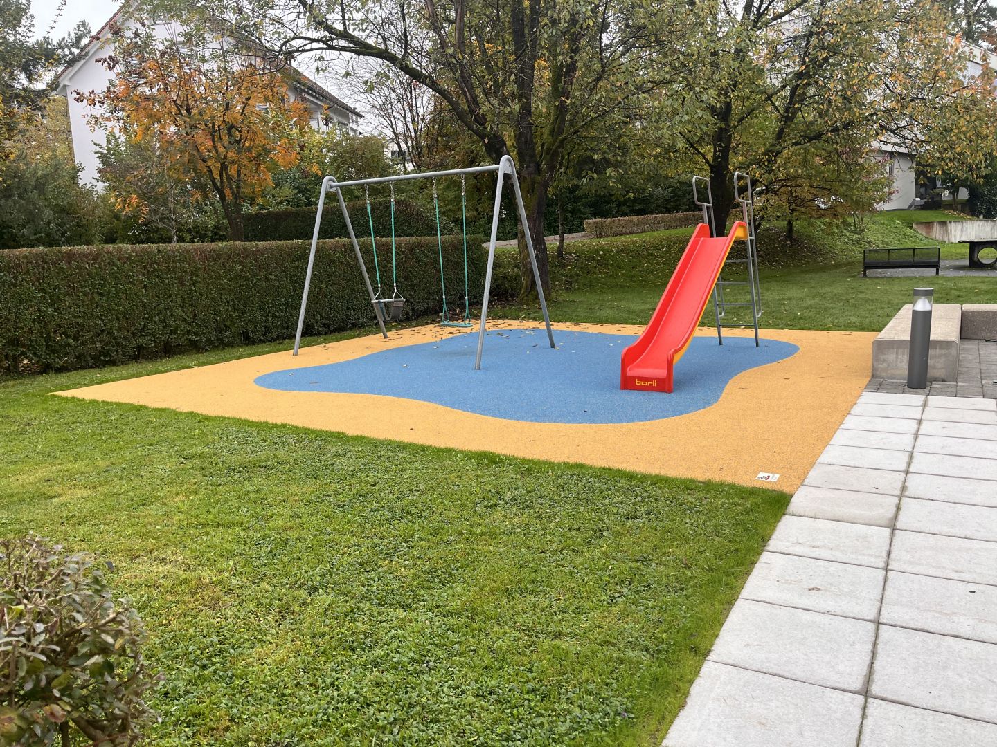 - Der Spielplatz ist veraltet, der Fallschutz hat sein Lebensende erreicht (harte Gummischrottplatten)