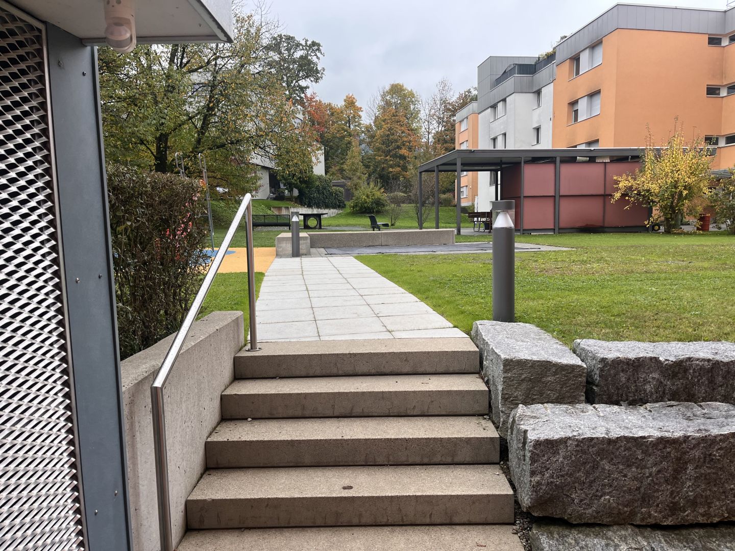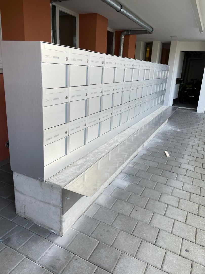 - Ergänzung der Briefkastenbatterie um eine Paketfachanlage. Im gleichen Zug: Verbreiterung bestehendes Vordach.