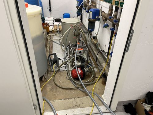 - Sanierung Warmwasserversorgung inkl. Entkalkung sämtlicher Versorgungsleitungen und Montage neuer Druckerhöhungsanlage.