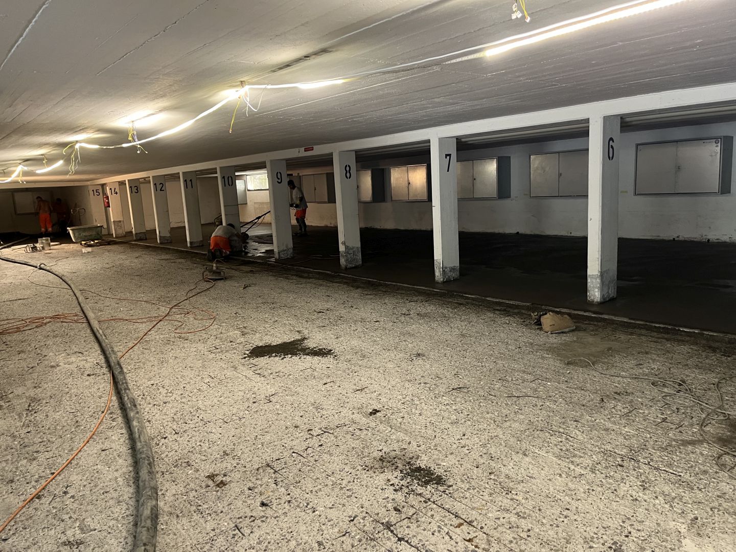 - Sanierung und Beschichtung Tiefgaragenboden, Instandsetzung Stützen.